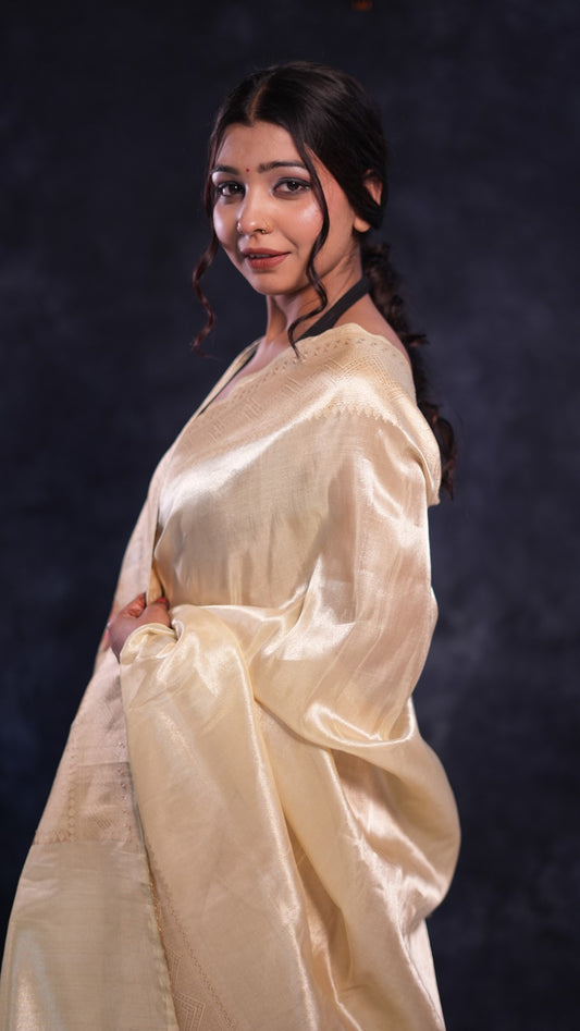 Introducing our curation, Devangana. Exuding the persona of a goddess, our first collection brings forth what is at the heart of Varanasi “Devotion”. Each piece is specially curated keeping in mind the energy and the elegance of the goddess figure. Based on the idea of “Purity” and “Divine Essence”, these sarees embody timeless grace and celestial allure.