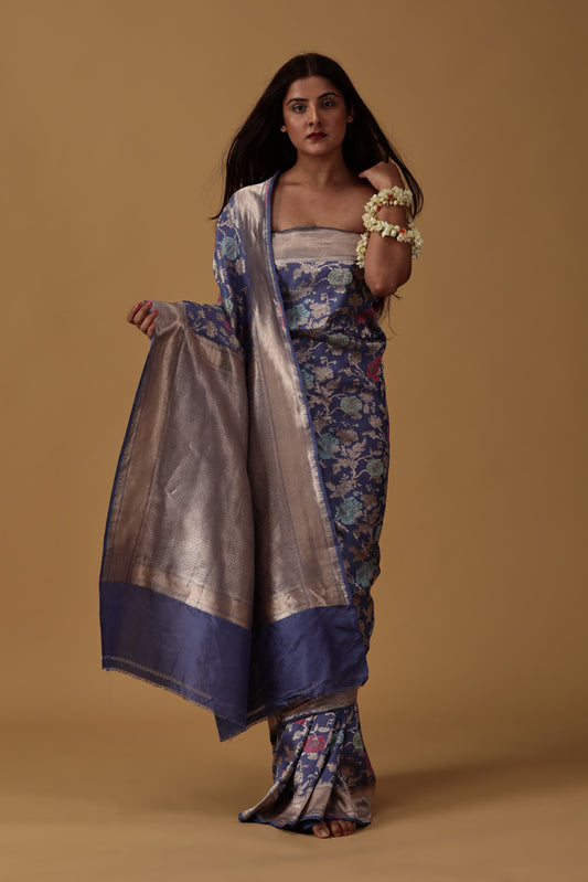 Neelam: Pure Katan silk handwoven Banarasi saree