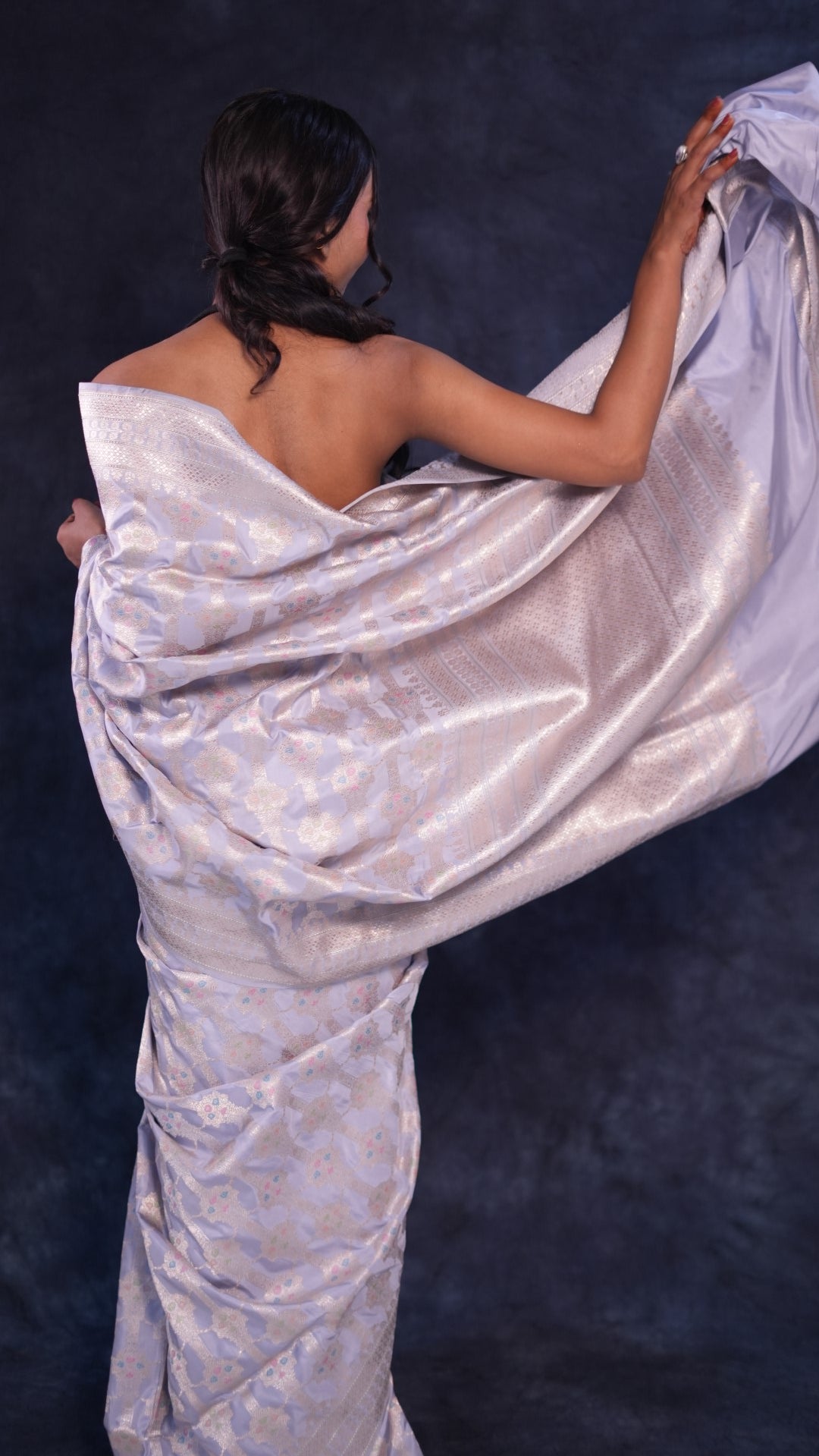 Chandi: Pure Katan silk handwoven Banarasi saree